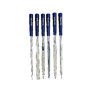 150 ziarno (większe ziarno). Ze zwężaną rączką. Umieszczone w poręcznym opakowaniu PVC. Zawartość: płaski, pólokrągly, trójkątny, okrągły, kwadratowy i nożowy. DIAMENT